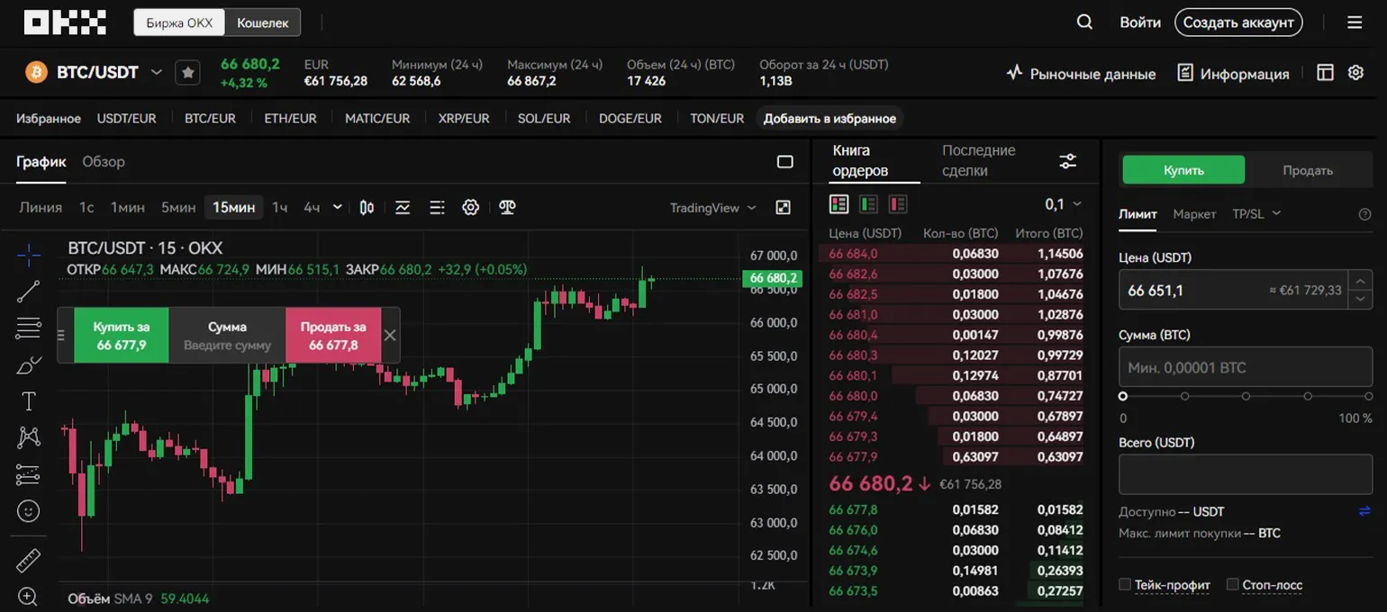 Трейдерам из России лучше выбрать биржу, на которой можно совершать операции с рублями. К таким относятся все перечисленные, кроме OKX, а также Bitget, Phemex, Gate.io. Эти биржи обычно работают с любыми российскими банками, даже находящимися под санкциями. Но их названия могут быть изменены — например, «Сбер» может называться «зелёной картой».