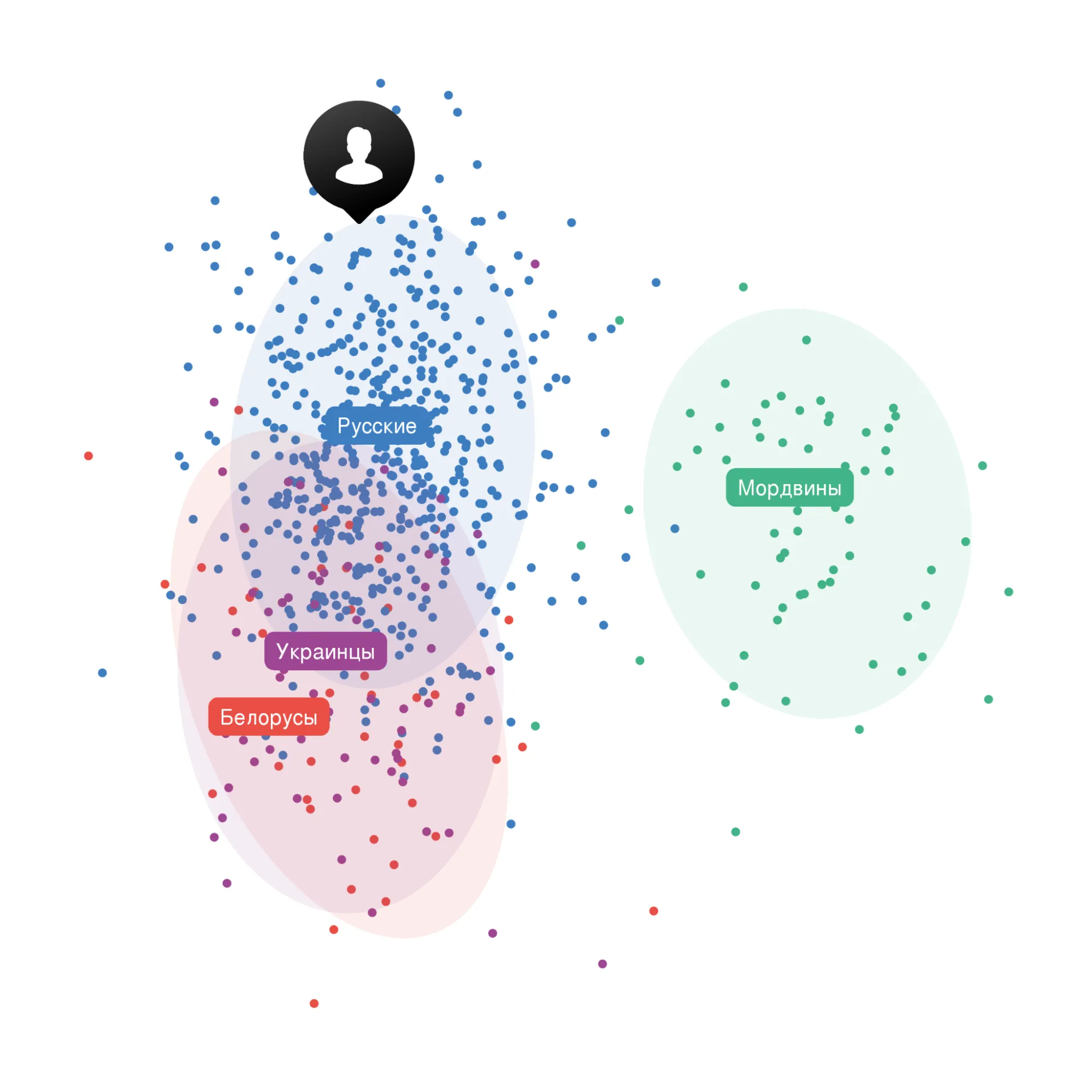 По версии Genotek, я 100% русский. Причём в пространстве русского генетического стандарта я нахожусь дальше всего от других родственных народов.
