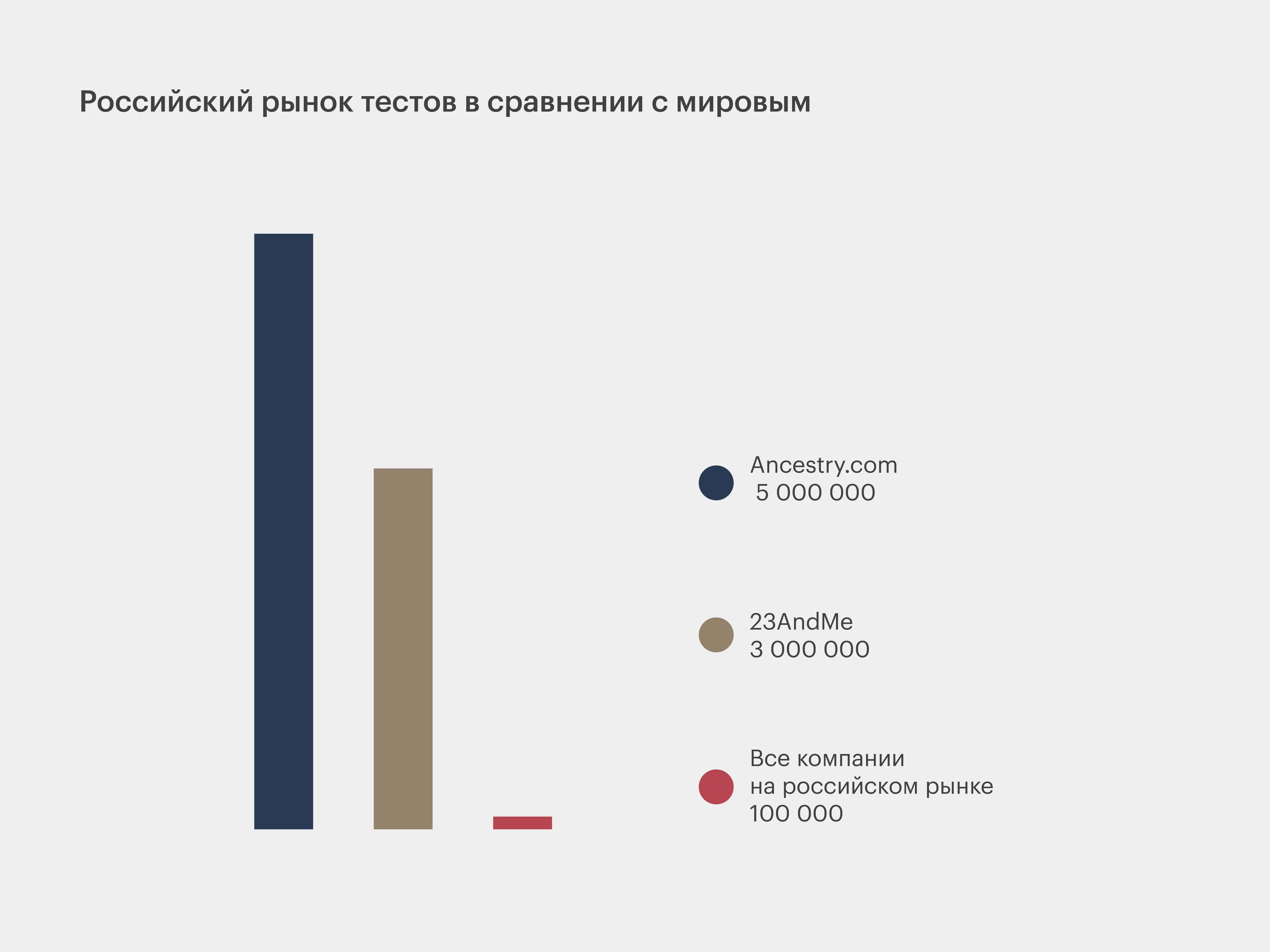 Четыре года назад США захлестнула волна увлечения генетическими тестами на происхождение — общее количество сделанных исследований увеличилось почти в 20 раз, основную массу клиентов составили именно американцы. Несколько лет назад рынок таких услуг начал развиваться и в России — объёмы тестирования пока что меньше американских в сотни раз, однако самые успешные компании растут стремительными темпами и успешно выходят на иностранные рынки.
