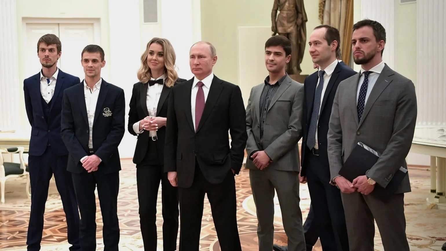 Владимир Путин на встрече с лауреатами премии «Немалый бизнес — 2019» (Илья Сачков — справа). Фото: администрация президента РФ