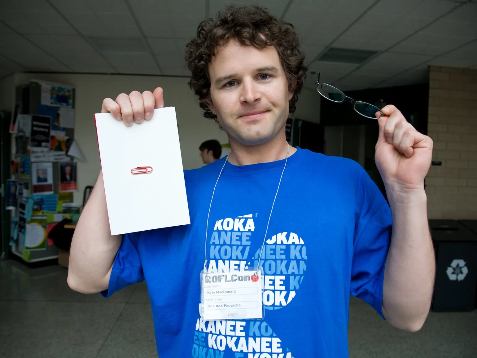 Узнать большеВ 2005 году канадец по имени Кайл Макдональд разместил на сайте Craigslist, одной из первых досок объявлений в интернете, пост, где рассказал, что хочет обменять свою красную скрепку на дом. Вскоре одна из пользовательниц сервиса предложила ему взамен ручку, по форме напоминавшую рыбу. Её Макдональд затем обменял на дверную ручку, а ту, в свою очередь, — на походную плитку, и так далее, пока не стал владельцем недвижимости.