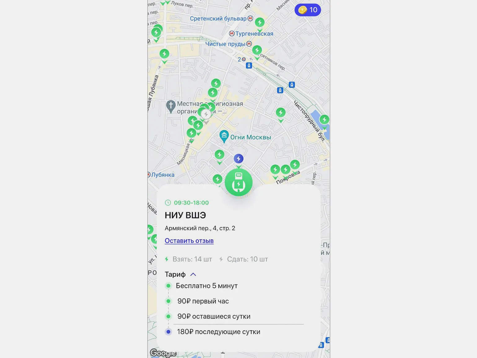 С учётом приветственных бонусов и кешбэка, которые мы начисляем всем пользователям, стоимость аренды может быть ещё ниже. Кроме того, во всех локациях есть бесплатное время от 5 до 30 минут. И многие пользователи заряжаются бесплатно.