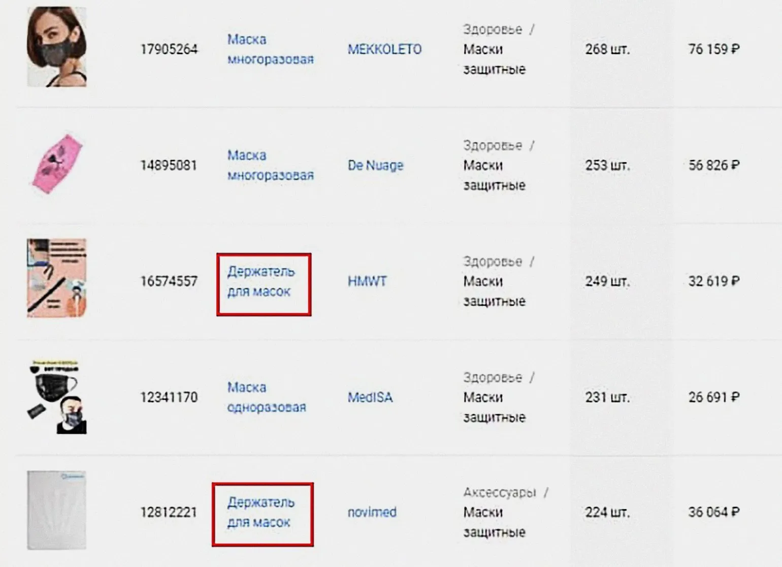 В феврале продажи упали ещё сильнее. Тогда же в лидерах появились необычные аксессуары — держатели и кейсы для масок. Можно сказать, что отрасль стала работать на продажу сопутствующих товаров.