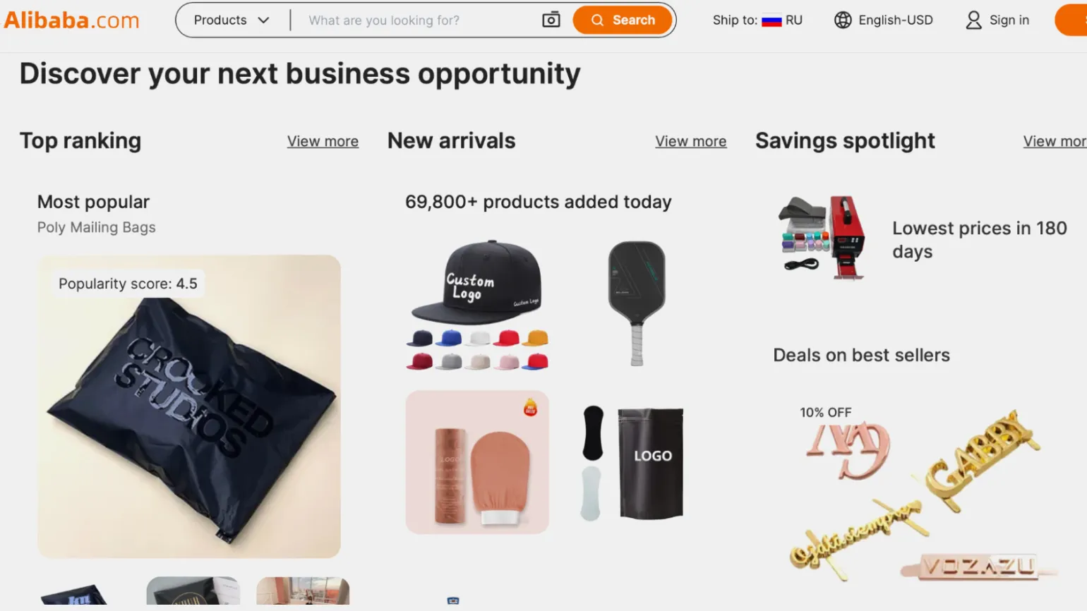 Китайская электронная площадка AlibabaСкриншот: Alibaba / JoomPro
