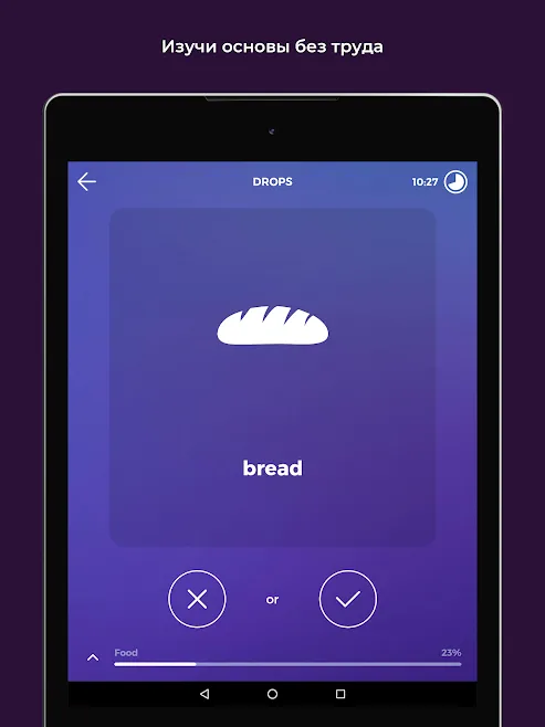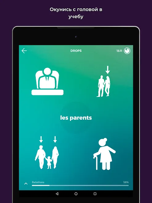 В течение пяти минут пользователю показывают слова и картинки-ассоциации к ним, а также предлагают подобрать к словам изображения с правильным значением. Команда учит основам языка при помощи визуальных ассоциаций. Такие ежедневные тренировки делают изучение языка частью повседневной жизни.