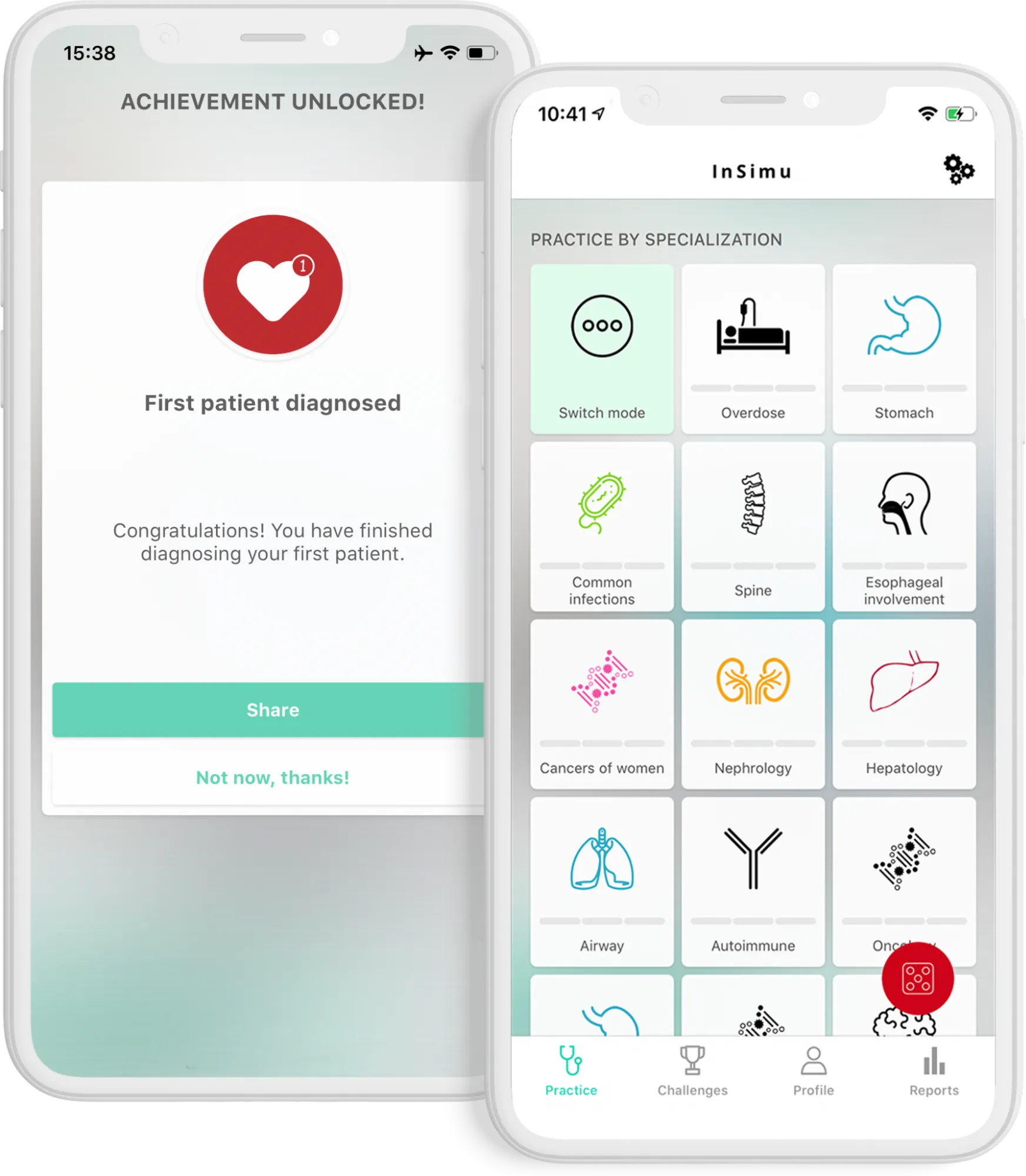InSimu — интерактивное приложение — симулятор пациента, позволяющее врачам и студентам-медикам практиковаться и ставить диагноз виртуальным больным. Программа генерирует историю болезни виртуального пациента с уникальным набором данных: возраст, перенесённые заболевания, анализы, показатели давления и другие. Будущему врачу надо определить, чем болеет пациент. В приложении доступно 150 болезней для 14 врачебных специализаций. Его используют для подготовки специалистов — от медбрата и ассистента врача до докторов-диагностов в различных сферах медицины.