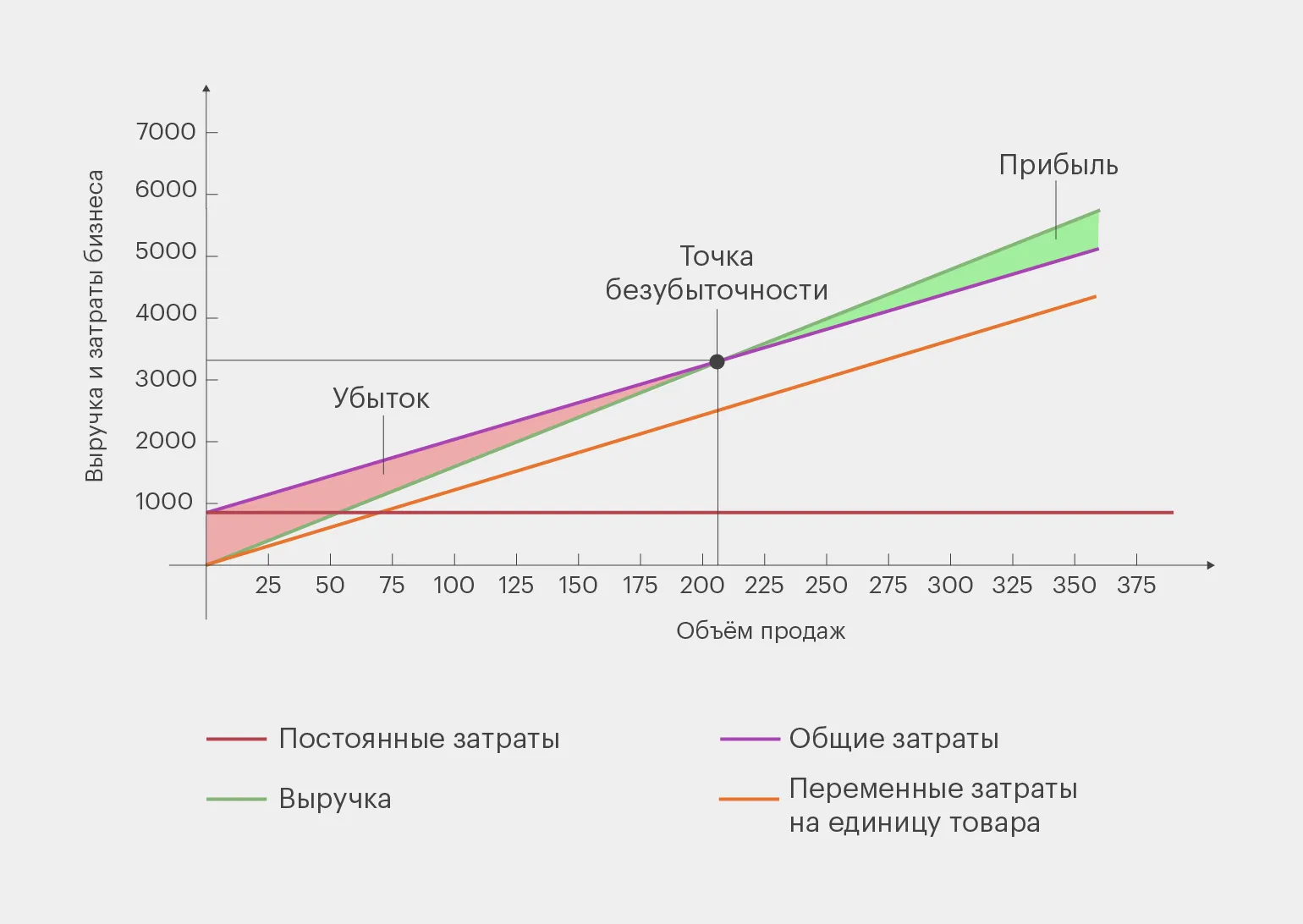 Точка безубыточности — минимальная выручка, при которой бизнес полностью покрывает свои расходы.