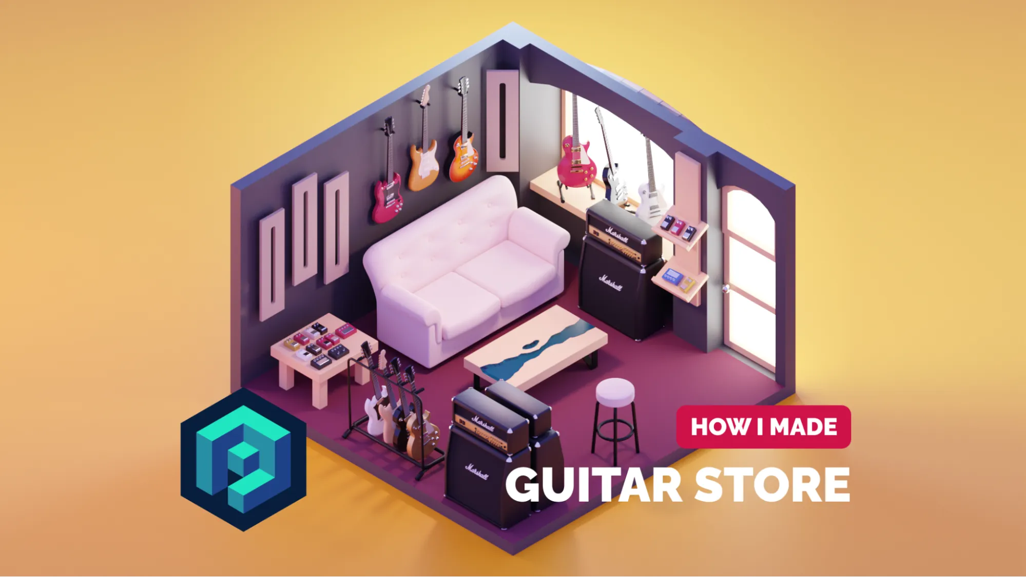 Роман Клчо, диорама гитарного магазина в Blender. Изображение: Dribbble
