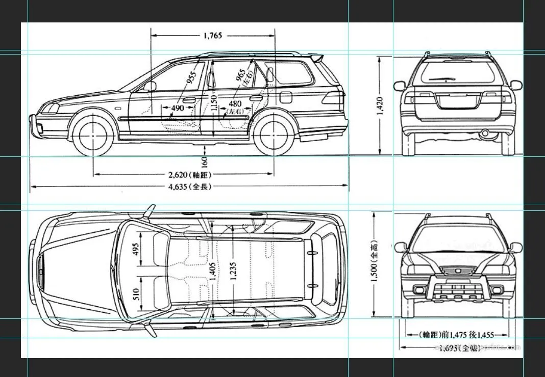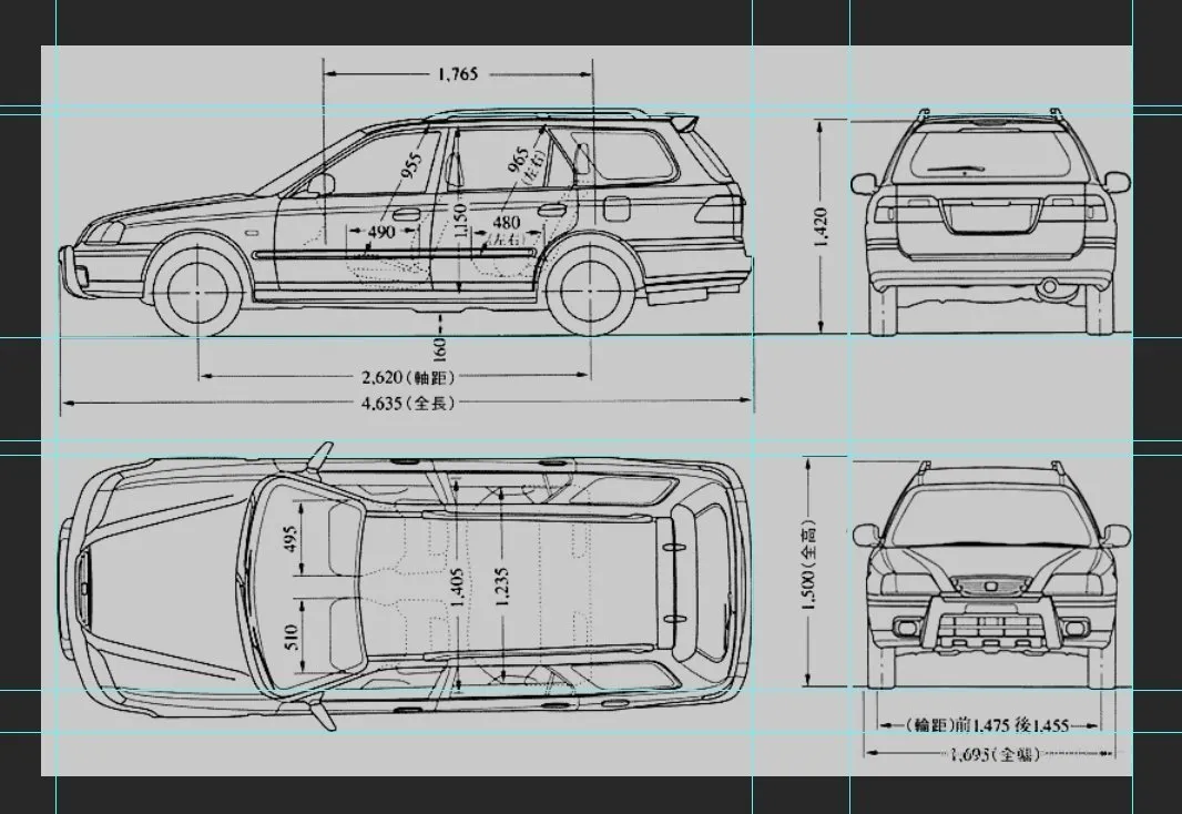 Чтобы реализовать задуманное, нужны чертежи автомобиля. Я буду моделировать автомобиль Honda Orthia, Sports Utility Wagon.
