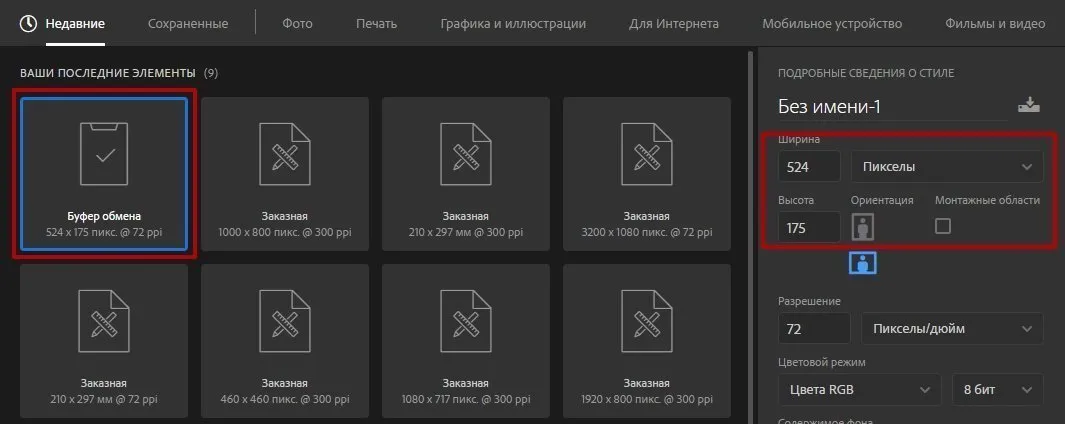 Если этот способ не устраивает, можете попробовать другой: выберите инструмент выделения Rectangular Marquee Tool (M), выделите нужную проекцию, например вид слева (желательно, чтобы была включена привязка по направляющим), и скопируйте его в буфер обмена Ctrl + C. Затем нажмите Ctrl + N для создания нового документа. Откроется окно с размерами выделенного фрагмента: