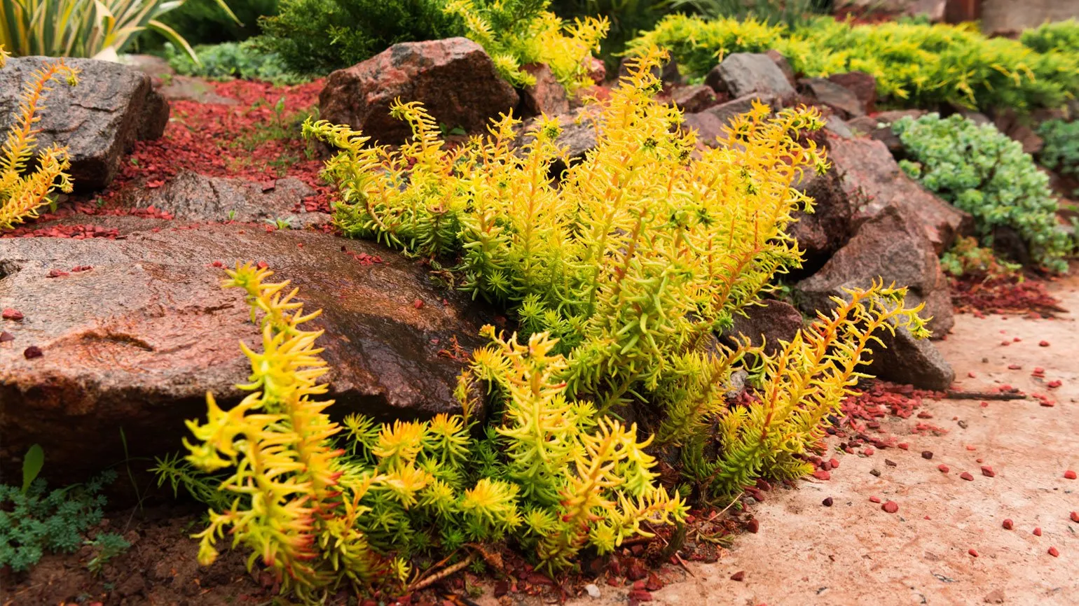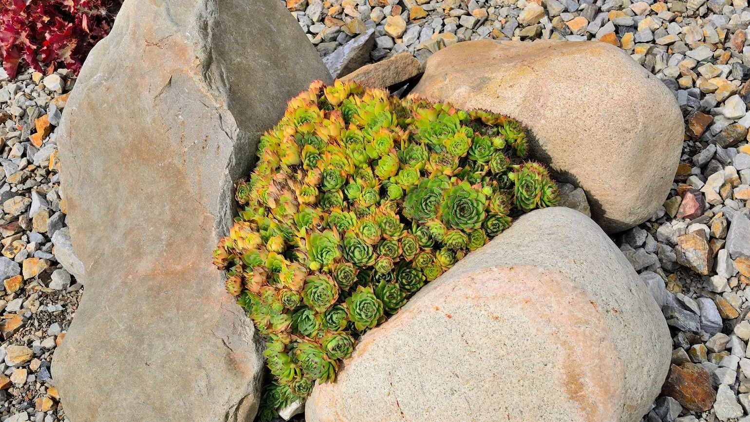 Однако главный визуальный элемент горки ― растения. Как правило, выбор ограничен не слишком привередливыми сортами, которым будет комфортно на специфической каменистой «почве», под прямыми солнечными лучами и при минимальном уходе.