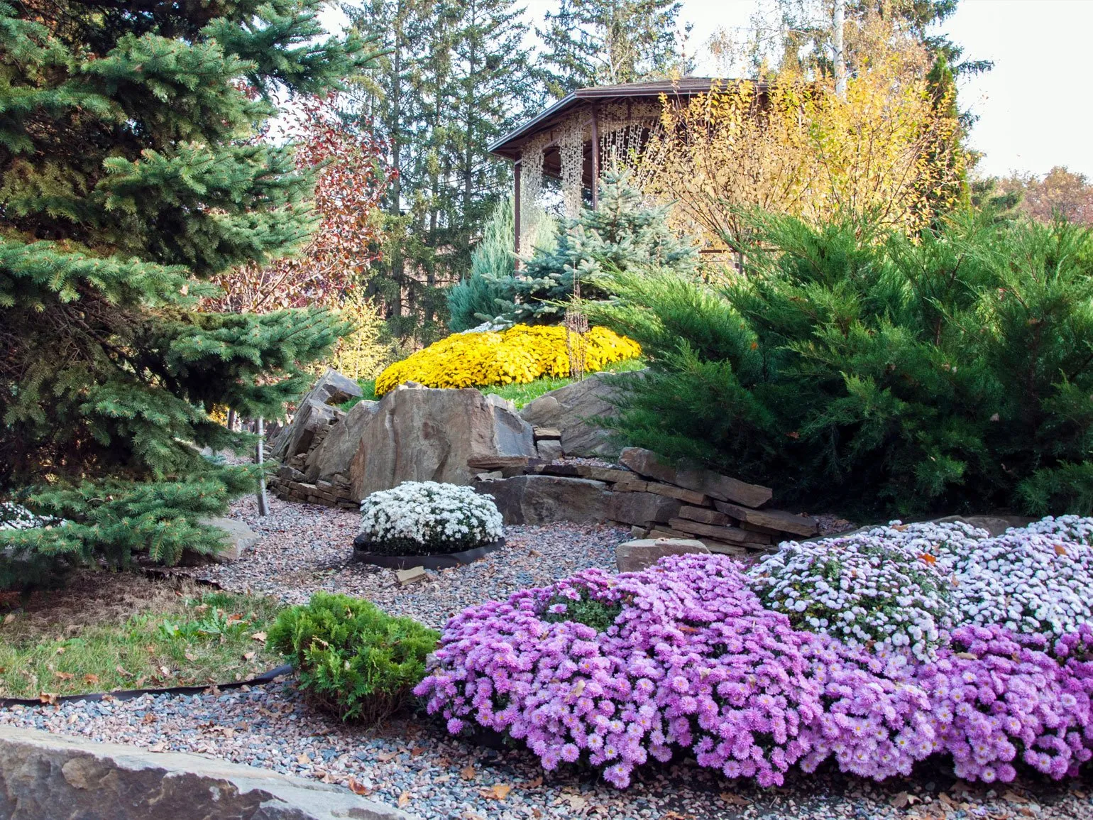 Дизайнер гармонично сочетает разные виды растений, учитывая их сезонность, периоды цветения, особенности ухода и цветовую палитру. Грамотно составленная композиция сделает альпинарий интересным элементом ландшафта.