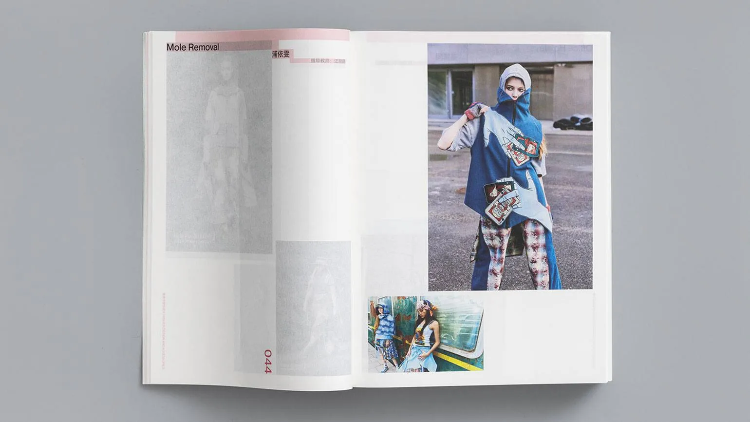 Выпускники прошлого года собрали все работы с выпускной итоговой фешен-выставки (выставку назвали Ritornello, что означает внесение новизны в мелодию или ритм — с помощью вариаций) и оформили их в большой концептуальный каталог, в котором снимки с выпускного показа чередуются с абстрактными фигурами, пиктограммами и схемами.