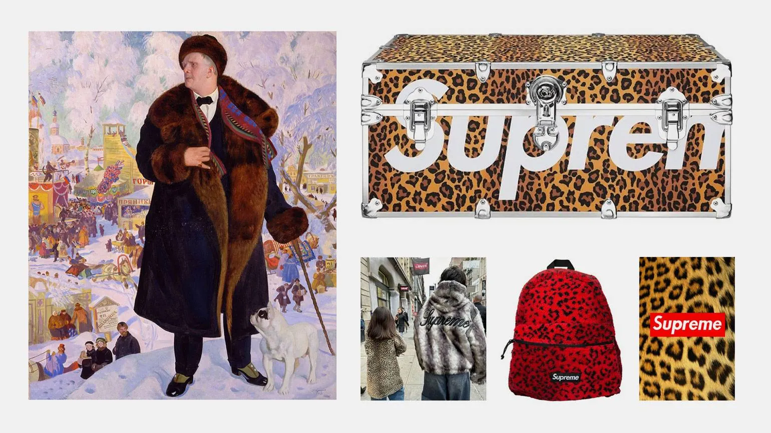 — Эстетика купечества изобильна, богата, цветаста. Когда я увидела в первый раз картину с Шаляпиным в шубе, у меня из головы не выходил бренд Supreme. Я изучила бренд подробнее и собрала вещи, которые рифмовались по эстетике: цветы, золото, красный, леопард.