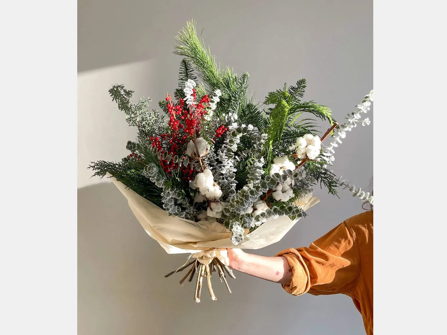 Ничто не заряжает новогодним настроением лучше, чем запах свежей хвои. А эти новогодние букеты и венки угодят даже самому взыскательному вкусу. Впрочем, нашей редакции больше всего нравится огромная и минималистичная охапка из разных хвойных веток.