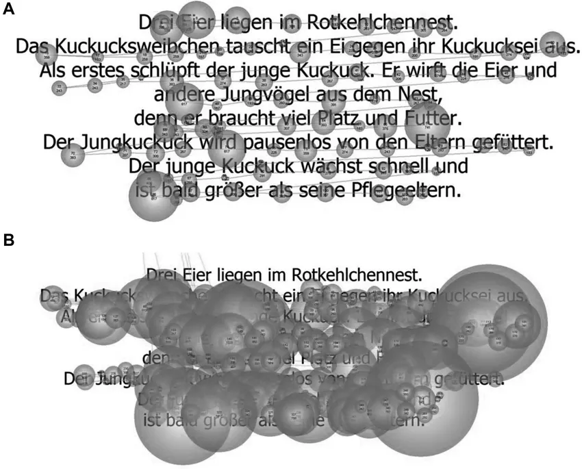 Вот, например: линии показывают саккады, а точки — фиксации. Размер точки показывает время фиксации: чем он больше, тем дольше человек смотрел в это место.