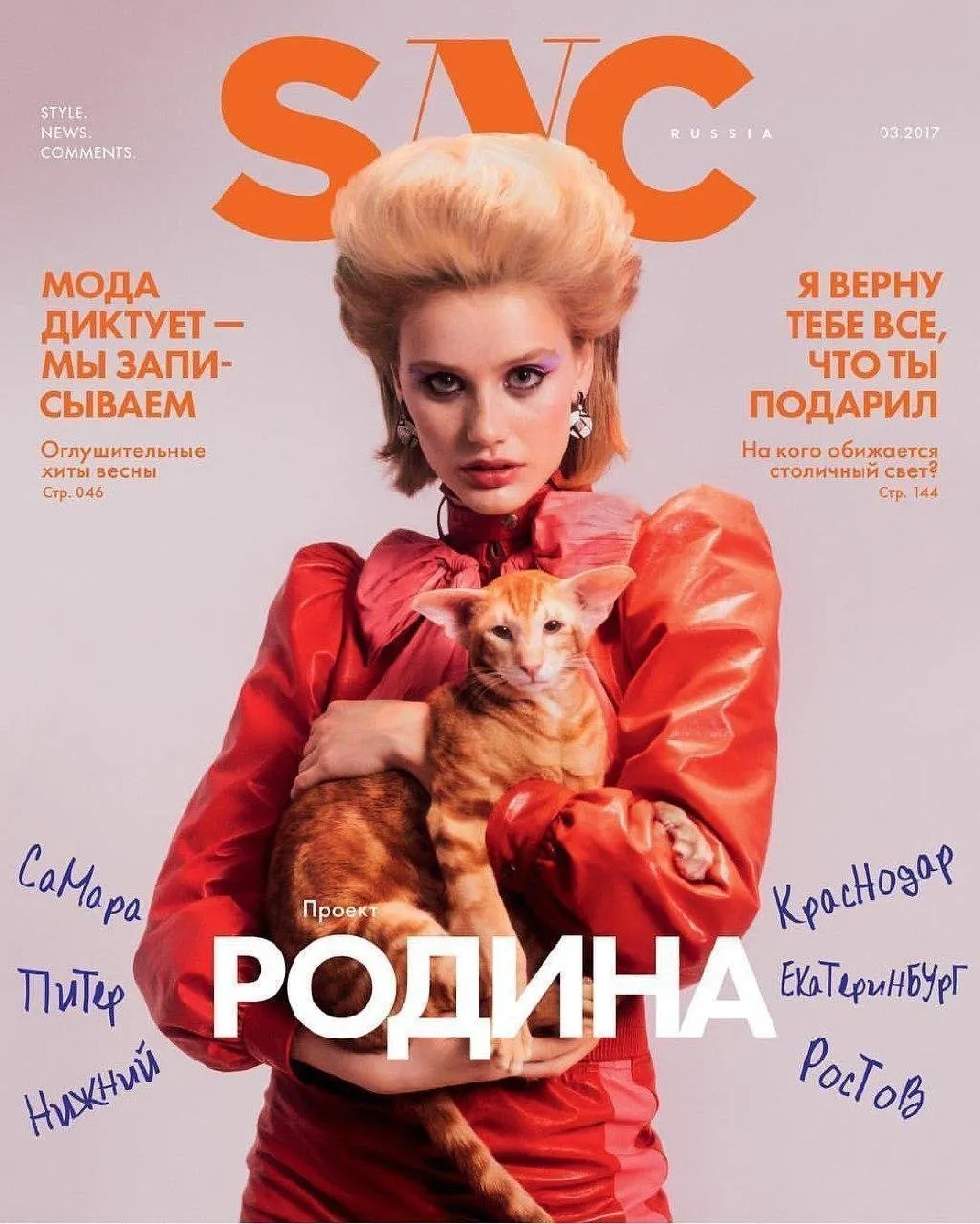 — Фотография на обложку, на которой я ретушировала кота, а модель мы оставили совсем без ретуши.