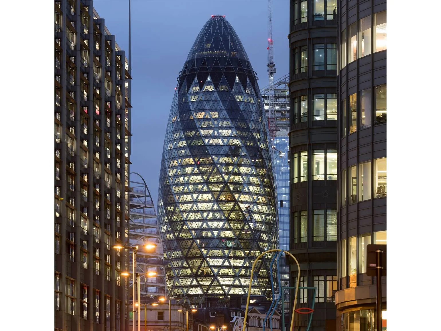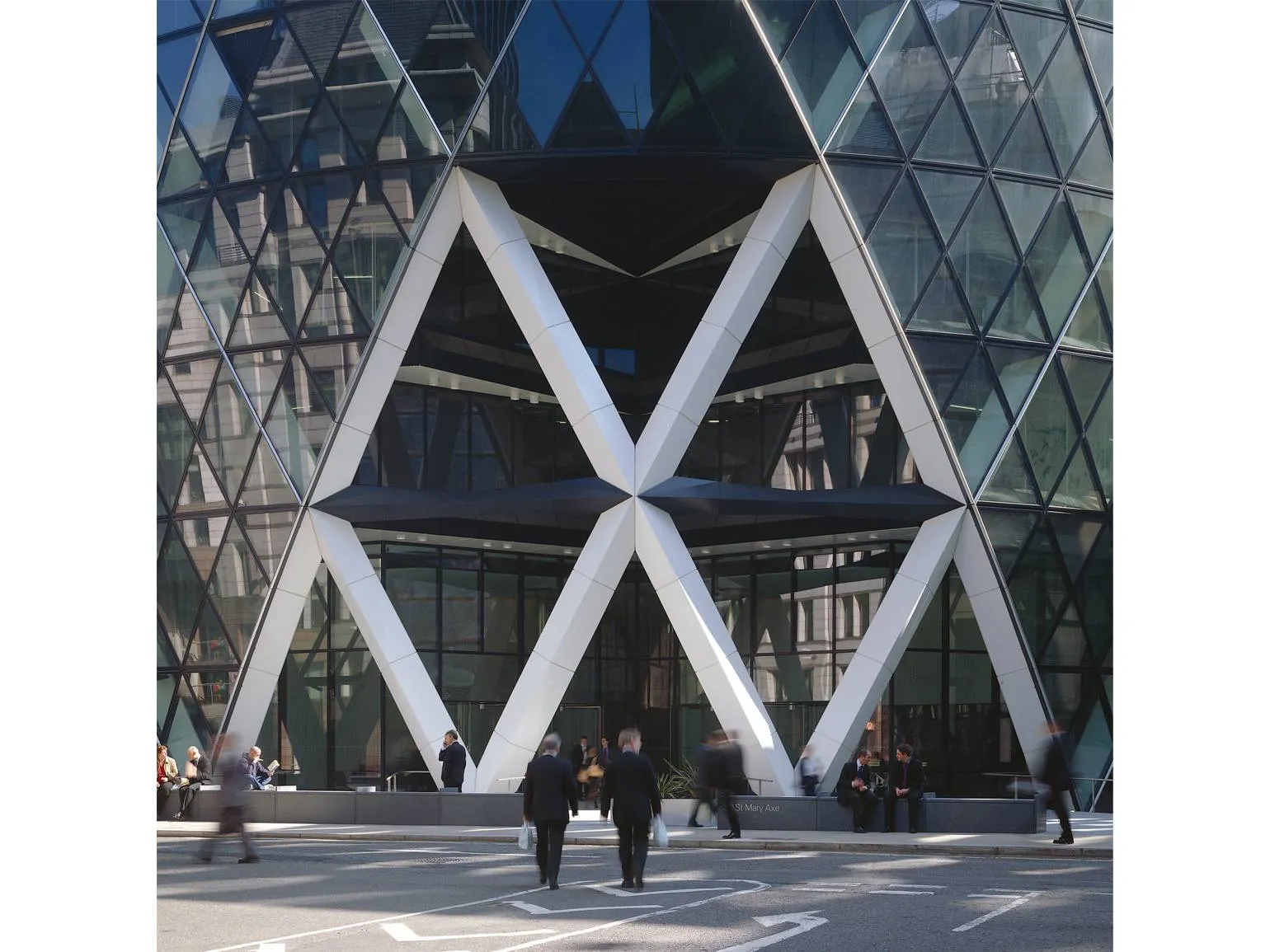 Норман Фостер активно интегрировал экологические принципы в свои проекты. Башня 30 St Mary Axe в Лондоне (2001–2003), известная как «Огурец», стала одним из первых экологически эффективных небоскрёбов. При строительстве применялись инженерные решения, позволяющие сокращать энергопотребление.