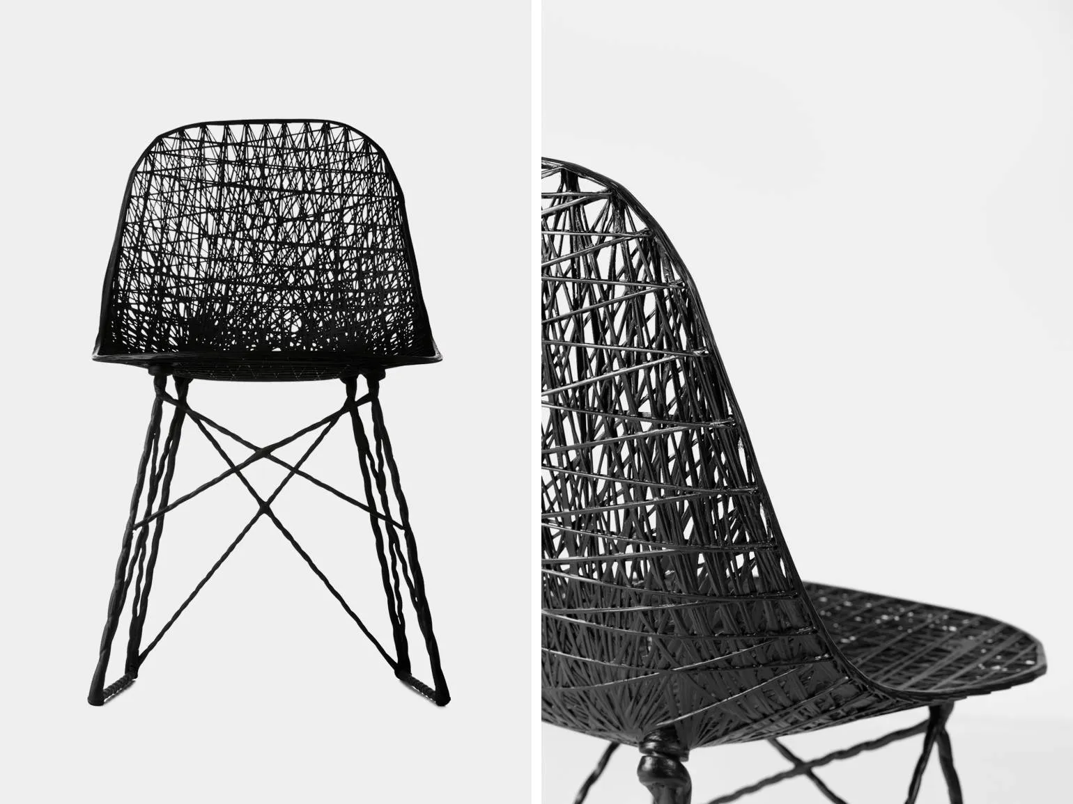 Углеродное волокно начало широко применяться в мебельном дизайне благодаря лёгкости и прочности. Стул Carbon Chair (2004) Марселя Вандерса для Moooi демонстрировал потенциал этого высокотехнологичного материала в создании изящных и прочных структур.