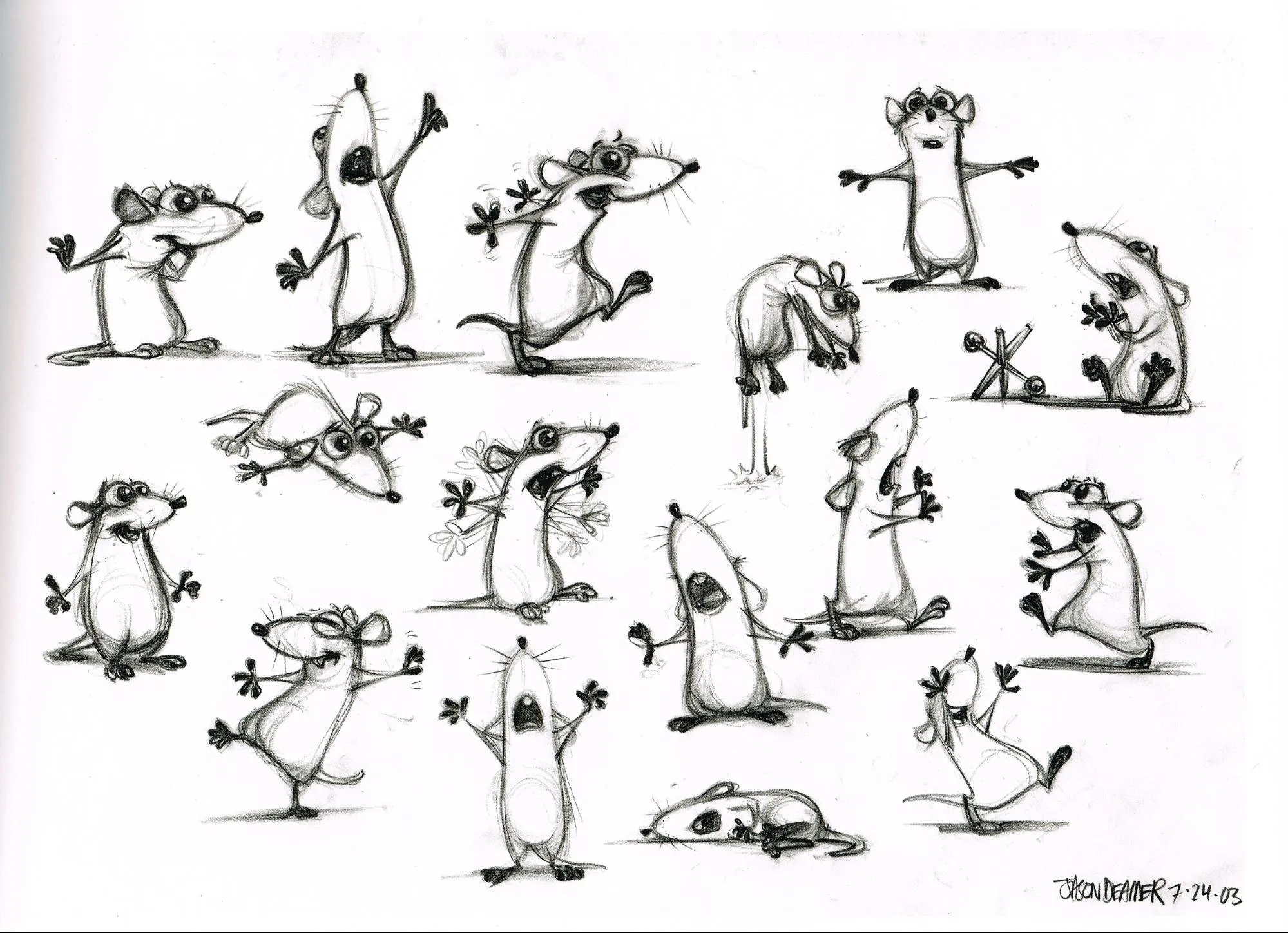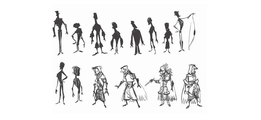 Если для иллюстратора не очевидно, как будет двигаться персонаж, можно сначала придумать силуэты и набросать простые геометрические формы, из которых будут состоять позы, а уже потом прорисовывать детали.