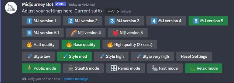 Режимы MJ version от 1 до 5.1 указывают на версию нейросети. Лучше всего использовать последнюю: по сравнению с предыдущими версиями она имеет большую детализацию изображений, выдаёт картинки более высокого разрешения и лучше понимает запросы.