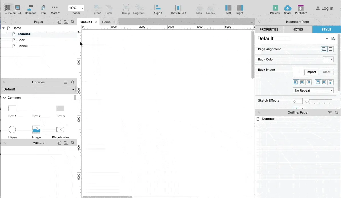 Рассмотрим создание прототипа на примере сайта для компании с блогом. Необходимые страницы для такого сайта — главная, блог и запись в блоге.