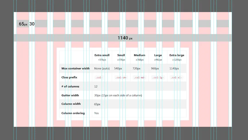 В результате получаем сетку для нужной ширины экрана, по которой удобно выравнивать контент.