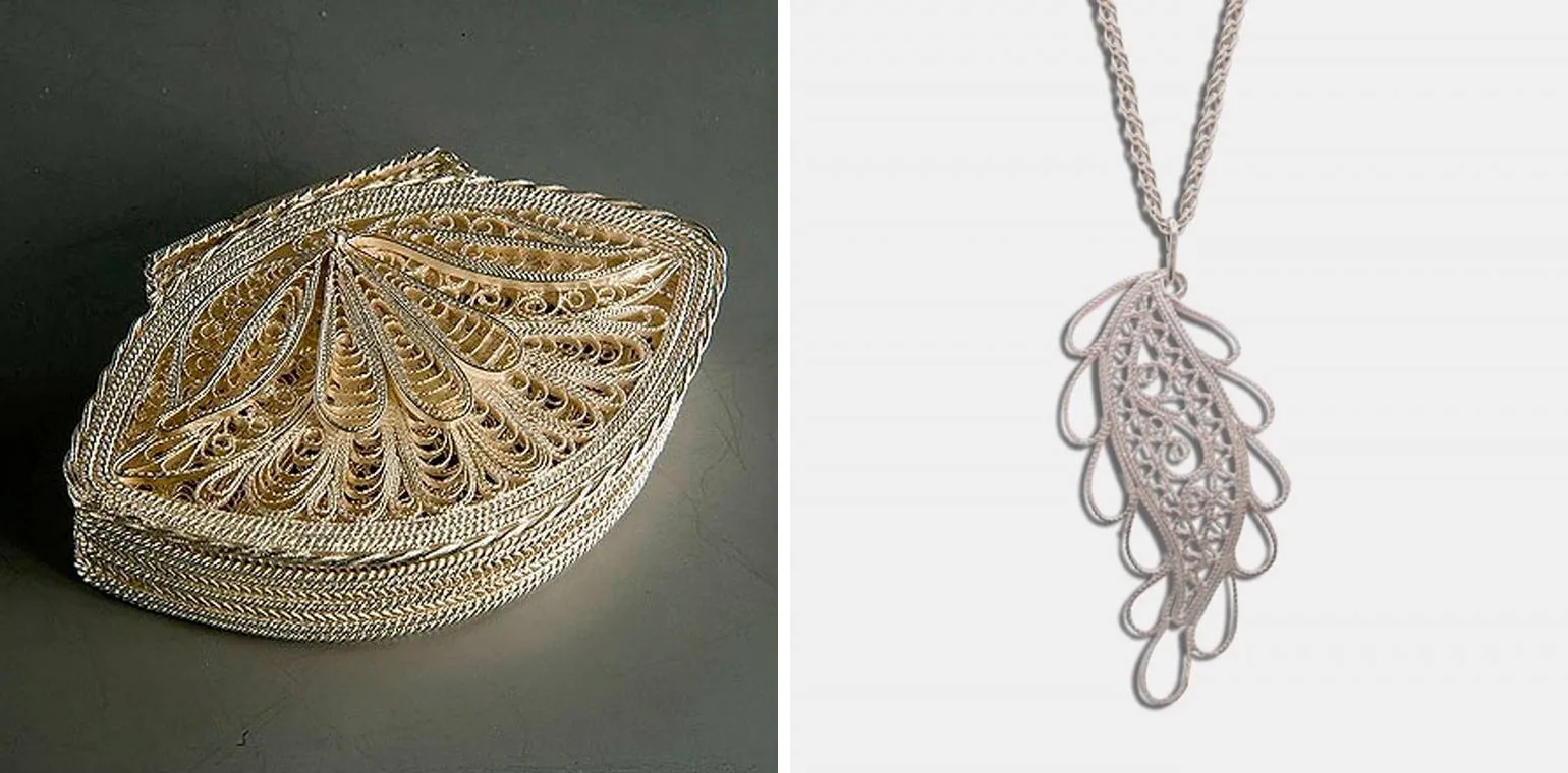 Изначально казаковскую филигрань делают из меди с посеребрением, но сейчас мастера работают и с серебром. Производство филиграни невозможно механизировать, это всегда исключительно ручная работа, — и это делает промысел замечательно аутентичным и ценным.
