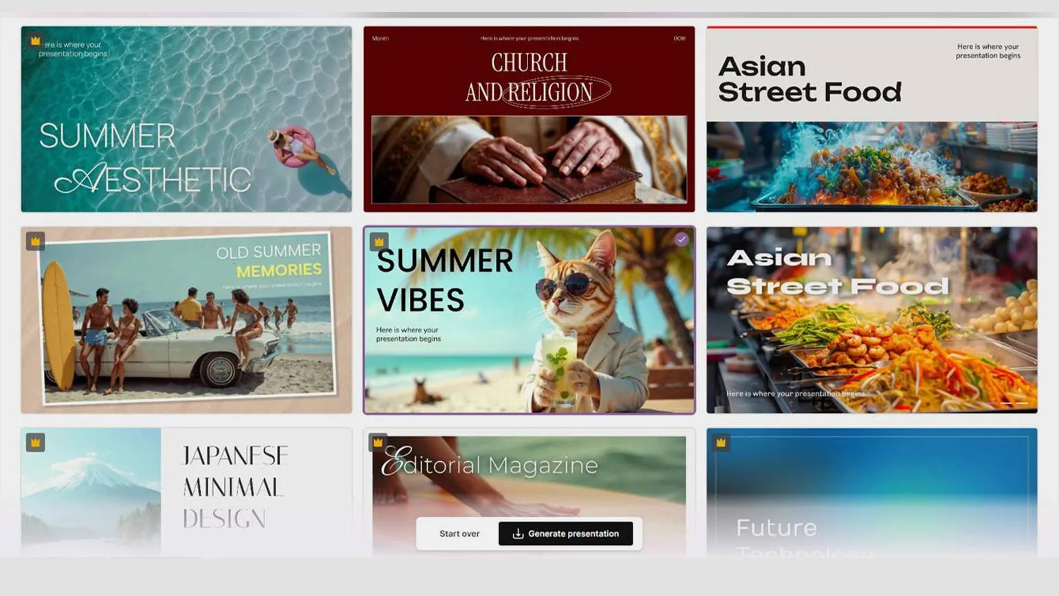 Преимущества. Удобно для тех, кто привык работать в Google Slides. Легко «направлять» искусственный интеллект с помощью референсов. Можно выбирать дизайн.