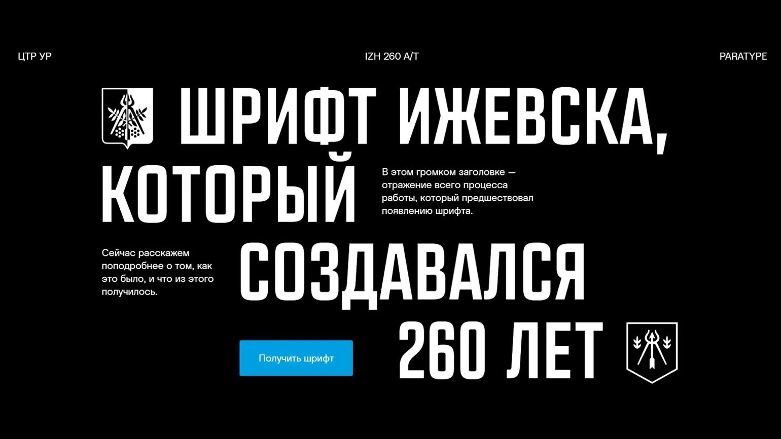 Шрифт IZH-260 AИзображение: дизайн Paratype / Центр территориального развития УР / Школа практического дизайна «Реформа»