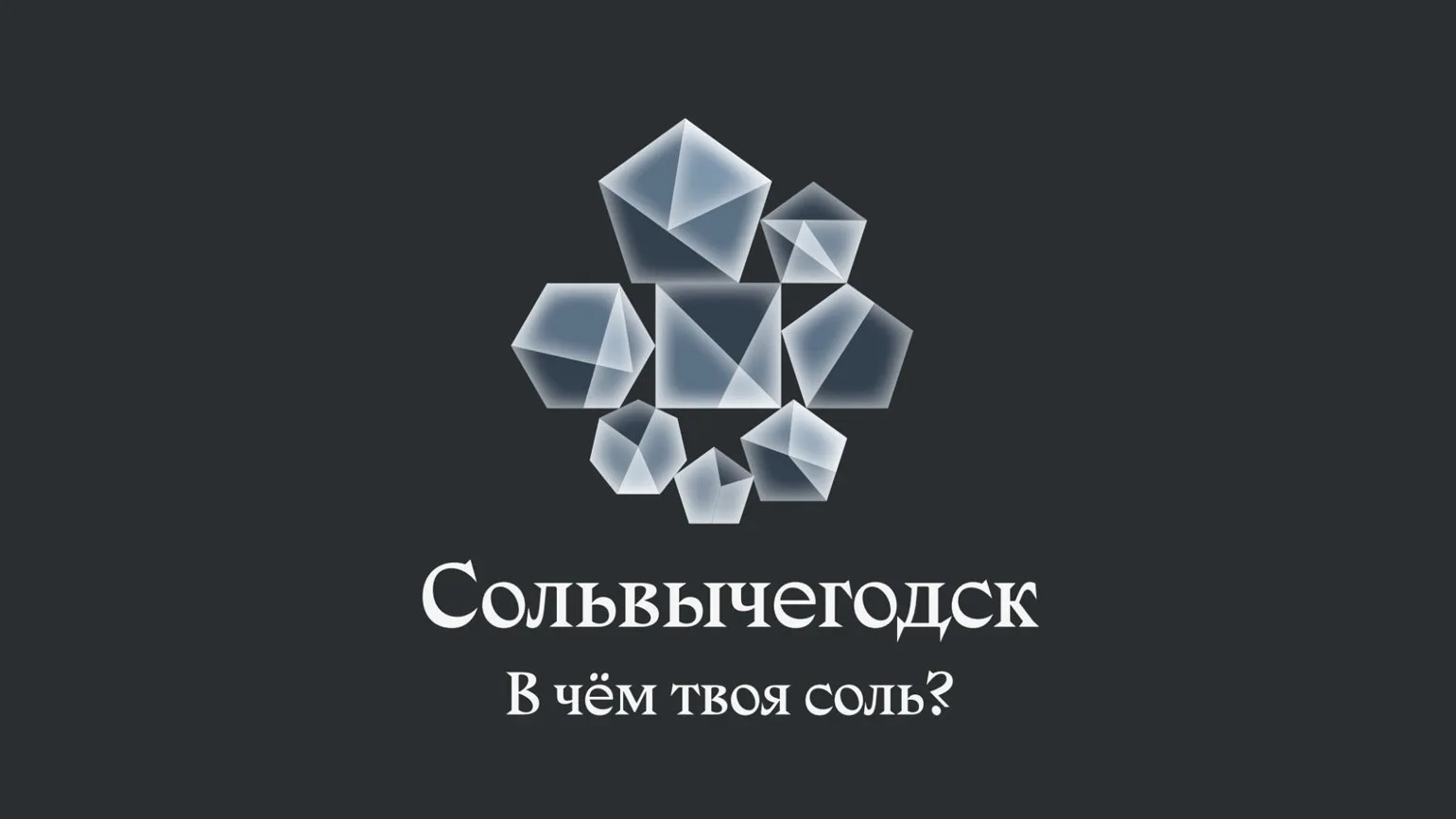 Логотип города — рисованные кристаллы соли, похожие на бриллианты. Каждый олицетворяет смыслы Сольвычегодска: Строгановых, санаторий, музей, гастрономию.