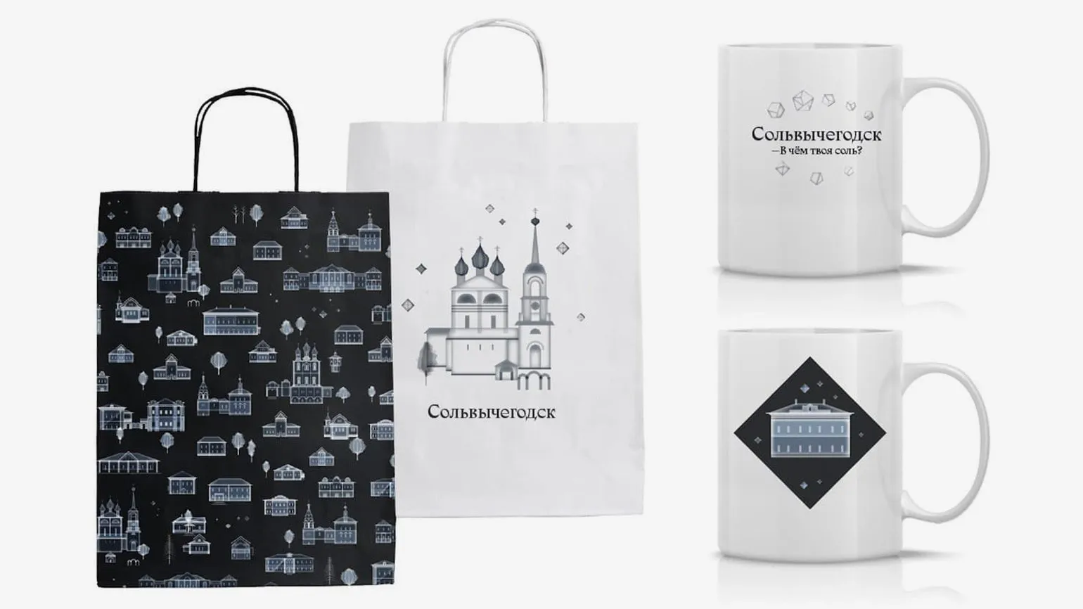 Сувениры с айдентикой СольвычегодскаИзображения: дизайн компании «Асмысл»
