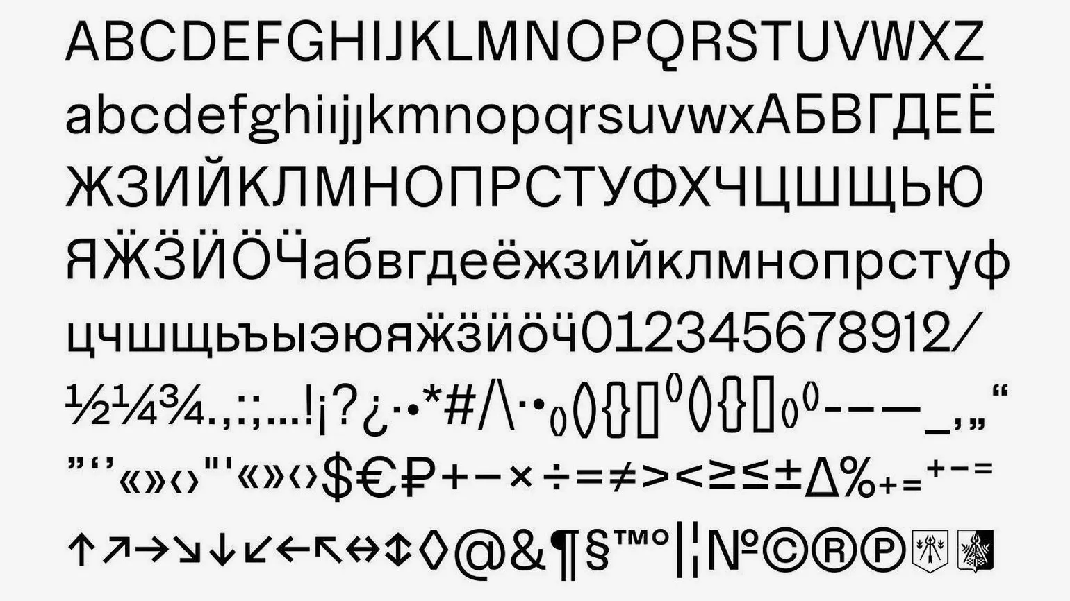 Второй шрифт ― IZH-260 Т ― информационный, подходящий для длинных текстов. Дизайнеры Paratype называют его скромным, но брутальным, он отсылает к швейцарским гротескам 1960-х годов. Шрифт поддерживает очень много знаков, стрелок, копирайты.