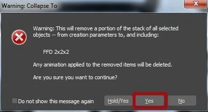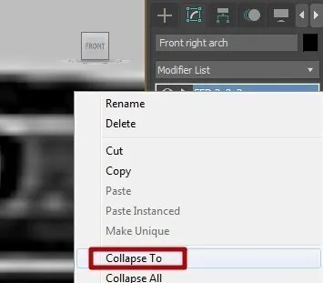 Теперь нужно зафиксировать изменения с помощью Collapse To. Выделите стек модификатора и кликните по нему правой кнопкой мыши, в контекстном меню нажмите на пункт Collapse To.