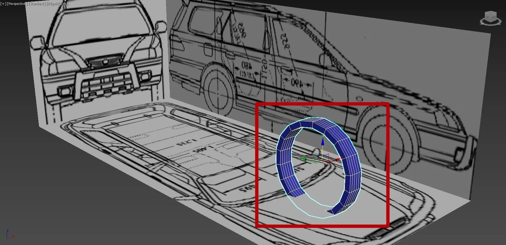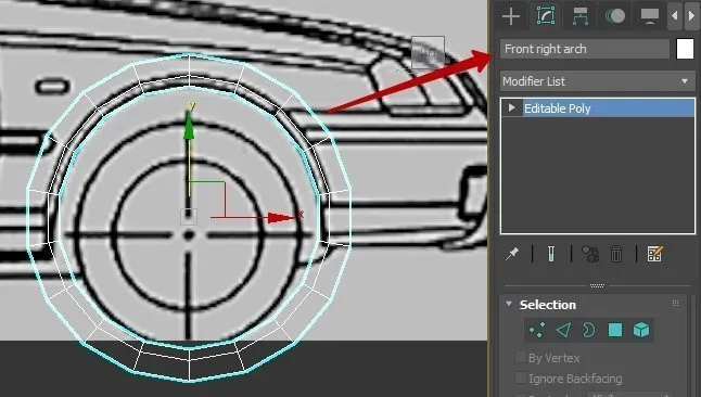 Мы будем моделировать автомобиль с помощью третьего способа — полигон за полигоном — и начнём с передней правой арки.