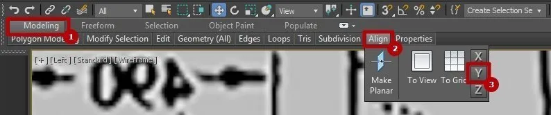 Перейдите во вкладку Modeling на панели Ribbon, далее во вкладку Align, выберите ось Y.
