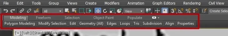 В Ribbon есть предустановленные наборы: Modelling, Freeform, Selection, Object Pant, Populate. Панель можно гибко настраивать под себя и добавлять свои наборы инструментов, это делается так же, как и при формировании стандартной панели 3ds Max.
