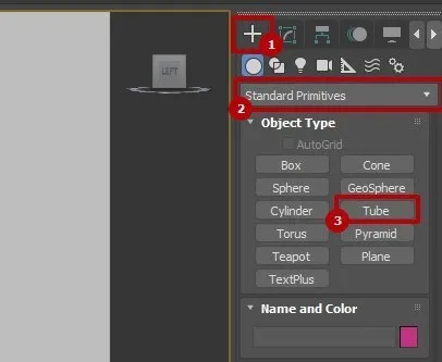 Выберите примитив Tube (на командной панели во вкладке Create в выпадающем списке должны быть выбраны стандартные примитивы).