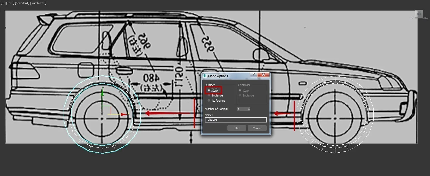Так как у нас почти готова передняя арка, можно сберечь усилия и скопировать её на место задней арки, пока мы не внесли слишком много изменений и она перестала быть полезной в качестве шаблона.