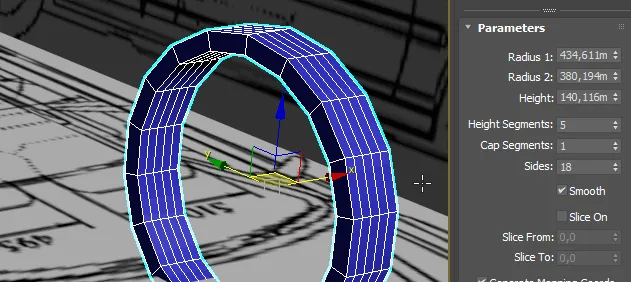 Но при таком подходе приходится внимательно контролировать поверхность и постоянно подгонять вершины, поэтому мы воспользуемся примитивом Tube (Труба). Поверхность ляжет прямо по арке, рёбра будут на одинаковом расстоянии друг от друга и сетка получится очень ровной.