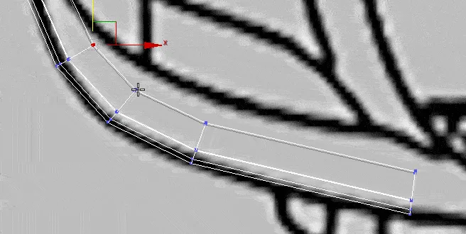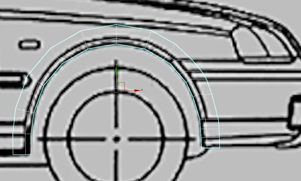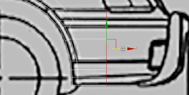 В окне проекции Top передвиньте рёбра по линиям бампера на чертеже. Теперь нам ещё нужно будет развернуть рёбра относительно линий бампера так, чтобы рёбра располагались почти перпендикулярно этим линиям.