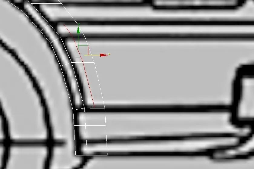 Перейдите в окно проекции Top и передвиньте вершину так, чтобы ребро, относящееся к этой вершине, стало параллельным относительно других рёбер. Слишком усердствовать на этом этапе не нужно. Передвиньте несколько вершин, контролируя их в нескольких окнах проекций так, чтобы рёбра у вас стали более аккуратны, чем были после перемещения по линии чертежа.