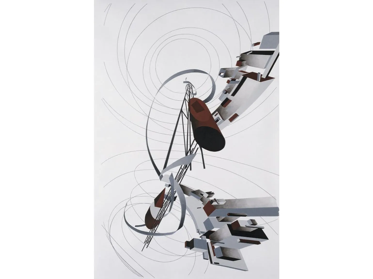 Была я в музее и во время застройки выставочных залов. Работы шли скрупулёзно и медленно, и до последнего был непонятен результат. Каждый день я проходила через выкрашенное в белый цвет пространство, в котором постепенно исчезали границы между полом, стенами и потолком. Посреди этой белизны строился обтекаемый выпуклый овал, похожий на половинку гигантской яичной скорлупы. В итоге над этой полусферой закрепили объекты-мобили Родченко — зал был посвящён второй выставке ОБМОХУ (1921), ознаменовавшей начало конструктивизма.