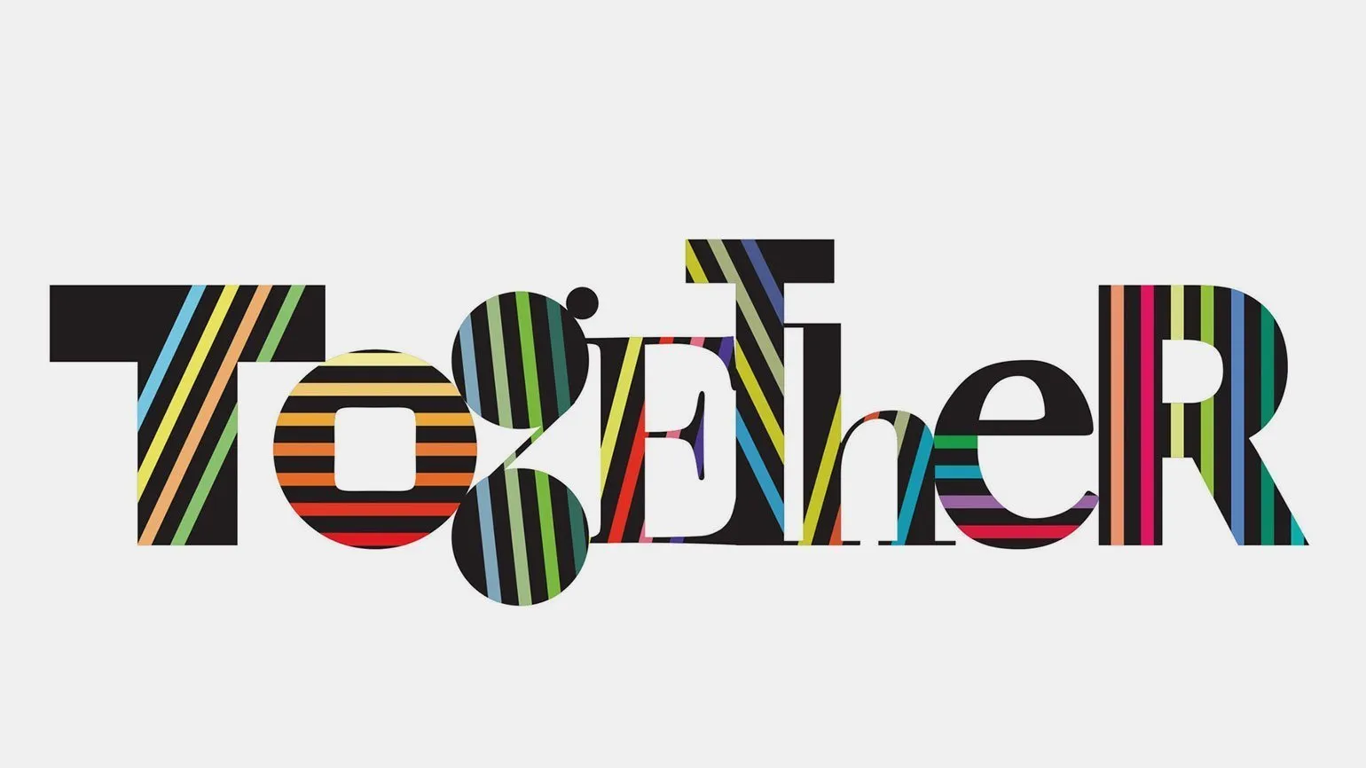 Здесь в слове Together (в пер. с англ. ― «вместе») использованы буквы из разных групп шрифтов — с засечками и без. Некоторые нарисованы вручную — например, строчная g; у других изменены пропорции — как у заглавной T в середине слова. Буквенные знаки выбраны таким образом, чтобы их можно было соединить вместе, сохраняя читаемость.