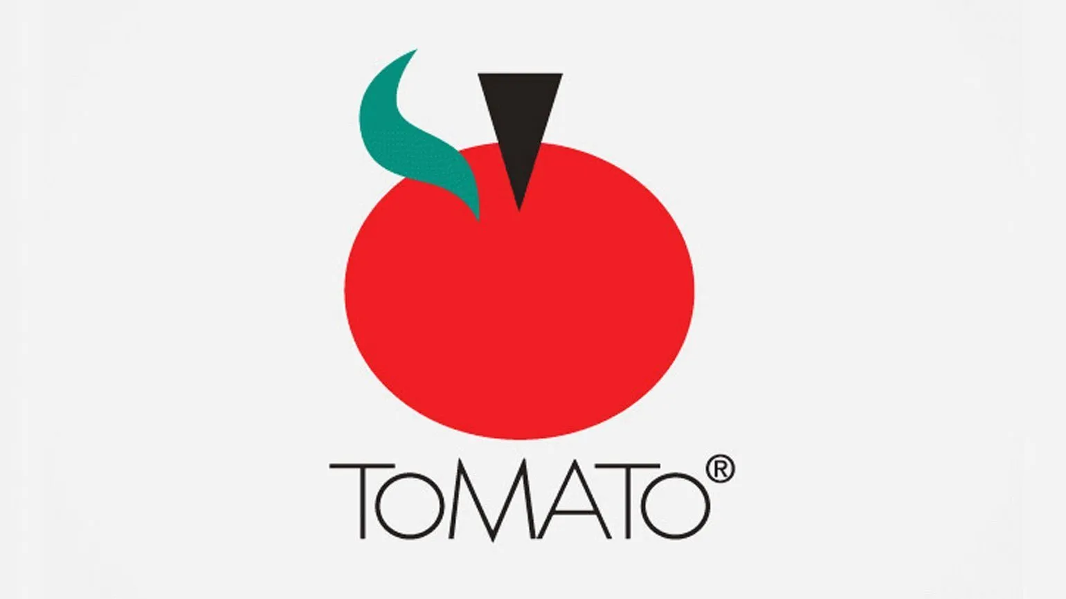Тут изображён одновременно и овощ, и виниловый диск с иглой. Знак смотрится современно и чем-то напоминает работы русских авангардистов. Но давайте посмотрим на его форму: в основе окружность и острый треугольник. Эти же формы повторены и в шрифте: буква O нарочито округлая, а М и А перекликаются с чёрным клином.