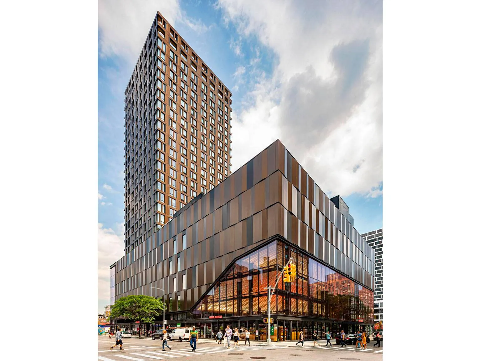 Многофункциональное здание Essex Crossing — совместный масштабный проект нью-йоркских бюро Shop Architects, Handel Architects, Beyer Blinder Belle, Dattner Architects и Bernheimer Architecture. Включает в себя жилые и офисные помещения, рестораны, магазины, рынок и общественные организацииИзображение: Handel Architects