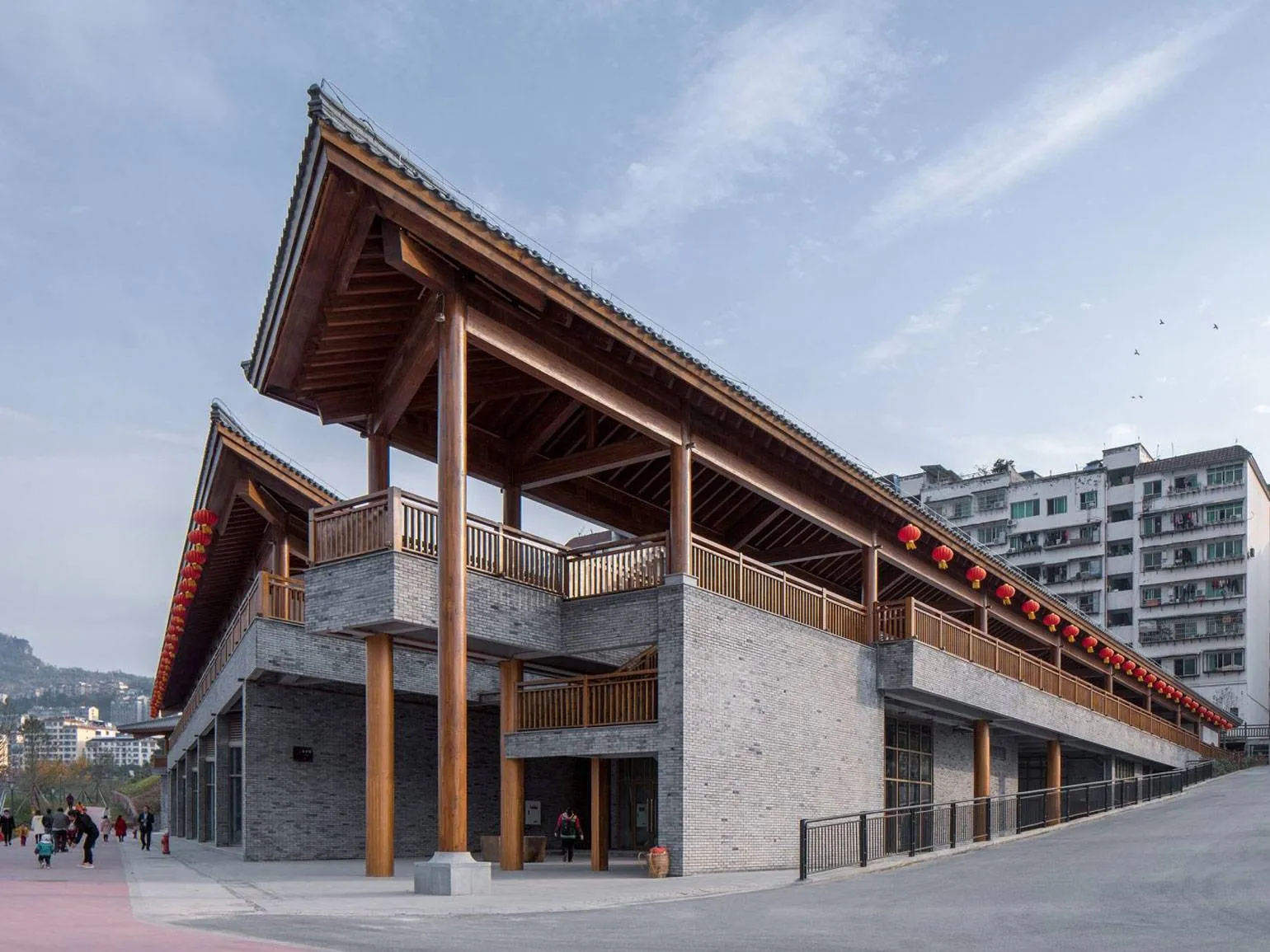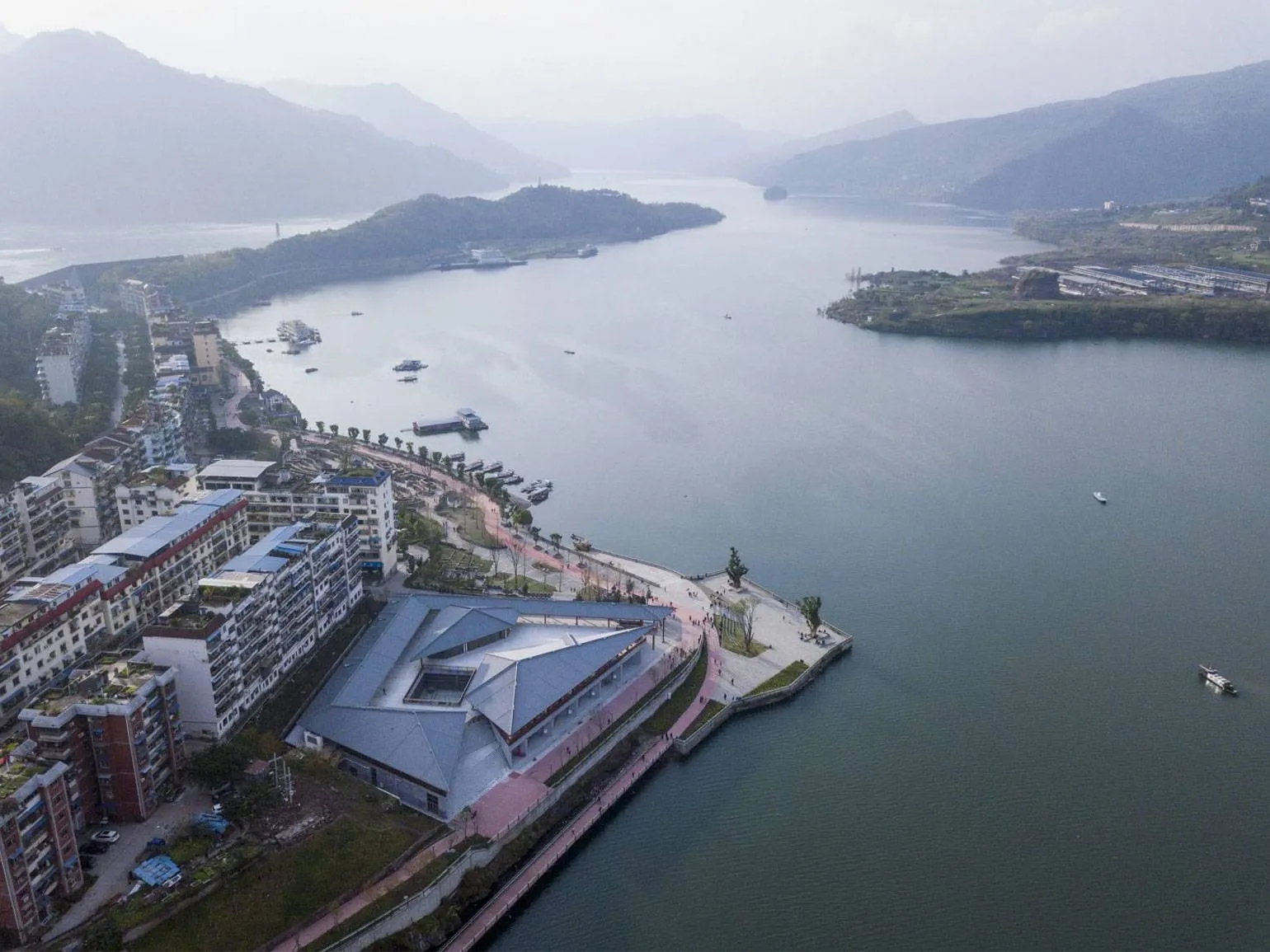 Здание Yunyang Sifangjing Service Building — проект китайской компании Tanghua Architect & Associates. Построено вдоль реки на наклонной площадке с перепадом высот до восьми метровФото: Tanghua Architect & Associates
