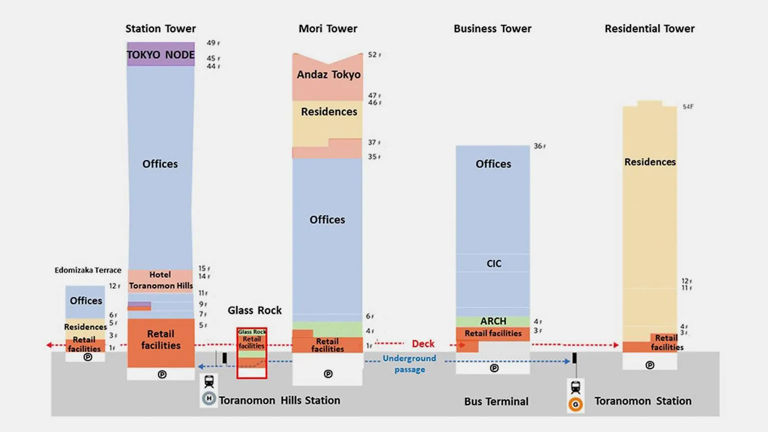 Высотный многофункциональный комплекс Toranomon Hills, проект компании Mori Building — архитектурный ответ на экстремальную плотность населения в столице: в пределах одной башни находятся офисы, жилые помещения, торговые объекты, зелёные зоныИзображение: Mori Building