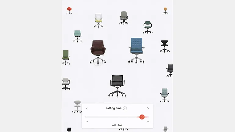 Мы наблюдаем тренд на эксперименты не только с навигацией, но и в целом со взаимодействием. При этом цель должна быть не просто поэкспериментировать, а улучшить опыт использования. Во втором примере очень крутой сайт — можно подобрать себе стул, исходя из того, сколько времени ты на нём сидишь. Очень простая и эффектная механика взаимодействия.