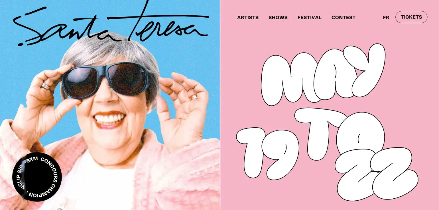 Коллажи всегда в тренде, но стоит их обыгрывать с какими-нибудь другими поддерживающими приёмами. Например, с крупной устойчивой типографикой. Но на мой взгляд, в первом примере намешано очень много стилей, обводка, рукописный шрифт и графика.